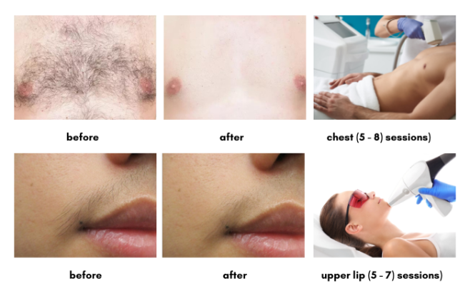 Compared to IPL and SHR, laser hair removal can target all skin tones (from light skin to dark skin).